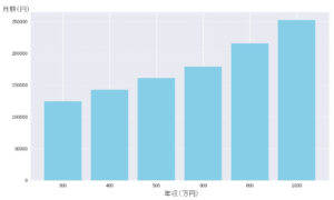 このグラフは、年収300万円〜1000万円の会社員が40年間厚生年金を支払った場合、65歳から受け取れる月額年金(老齢基礎年金+老齢厚生年金)を示しています。