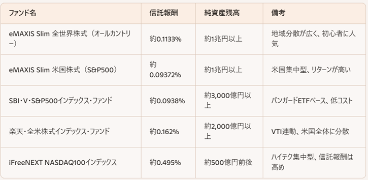 → 長期運用を前提とするなら、信託報酬が低く、純資産残高が多いファンドを選ぶのが基本です。