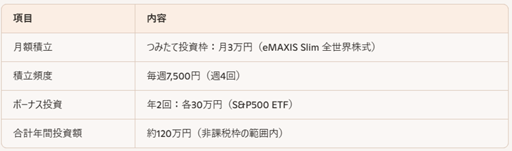 (1)通常の積立に加え、年2回のボーナス時に追加投資