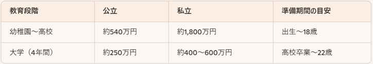 🧱 教育資金の必要額と準備期間