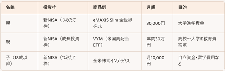 → 教育資金の「時期」と「目的」に応じて、名義と商品を使い分ける