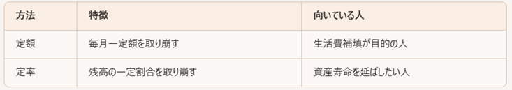 → 生活費の安定性を重視するなら定額、資産の持続性を重視するなら定率