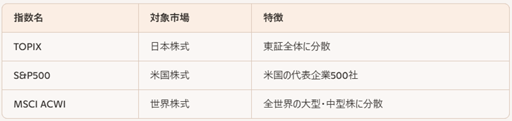 インデックス投資とは、特定の市場指数(インデックス)に連動するよう設計された投資信託やETFに投資する手法です。