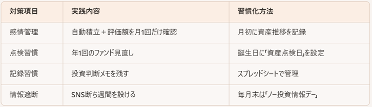 → 「仕組み化+習慣化」で心理バイアスを乗り越える。