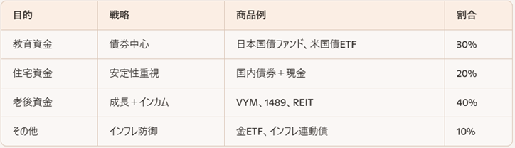 (1)教育資金は目的時期に合わせて債券へ移行。
