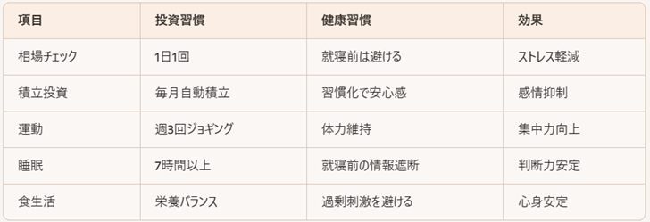 → 投資と健康を「習慣化+仕組み化」で統合する。