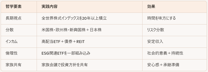 → 投資哲学は「成長+安定+倫理+家族」で具体化される。