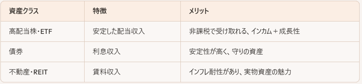配当・利息・不動産収入を組み合わせた総合的なインカム設計を中心に整理しています。