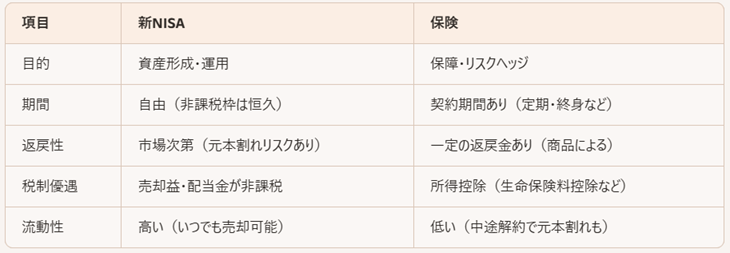 → 保険は「必要なときに必要な分だけ」、新NISAは「長期で育てる」